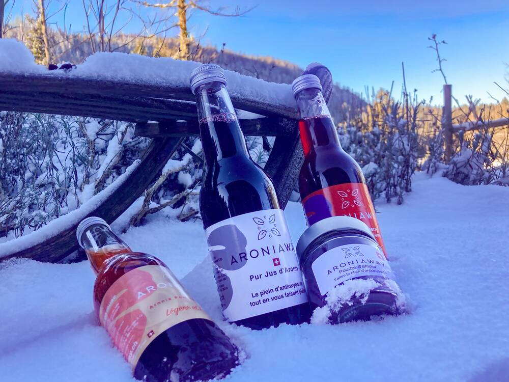 Un peu comme s'ils nous attendaient à l'aube du renouveau, l'hiver et le froid, secs, francs et ensoleillés, nous accompagnent en ce début d'année. Les compteurs sont remis à zéro (avec notre inventaire, c'est au propre comme au figuré!), et pour nous aider à garder cette toute fraîche vigueur (qui a peut-être été quelque peu ralentie, voire alourdie par les fêtes), nous avons pensé à une petite baie magique : l'aronia ! Originaire d'Amérique du Nord et très utilisée chez les Amérindiens, cette petite baie ronde et aussi maintenant cultivée chez nous. A manger séchée, nature, elle vous surprendra par son goût assez âpre, mais mélangée, ou en poudre, elle se mêlera facilement à vos mueslis ou diverses préparations. Les jus purs ou aromatisés sont aussi une autre manière de profiter de ses nombreux bienfaits (une des baies les plus riches en antioxydants) et si vous souhaitez commencer gentiment, aroniaway a crée aussi une limonade, plus douce, à base d'aronia.