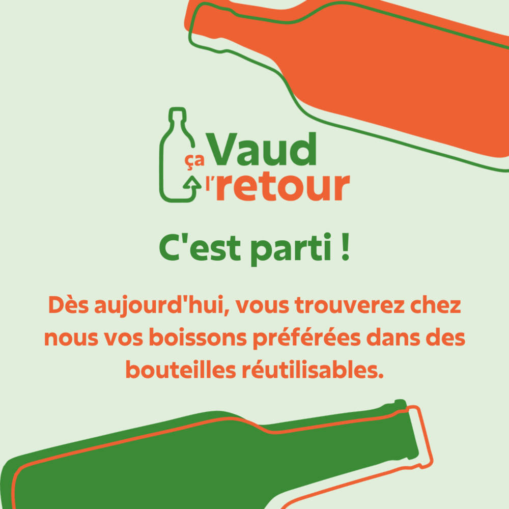 ça Vaud l’retour est un projet pilote qui vise à promouvoir l’économie circulaire dans le Canton de Vaud à travers la mise en place d’une filière de réutilisation des emballages en verre. La filière ça Vaud l’retour coordonne un réseau d’acteurs locaux: producteurs de boissons (bière, vin et boissons non-alcoolisées), points de vente et acteurs de la logistique. Le pilote consiste à développer autour des communes de Lausanne, Gland et Nyon un réseau de vente, de collecte et de lavage à échelle réduite afin de démontrer la faisabilité, l’efficacité et la rentabilité d’une telle organisation.