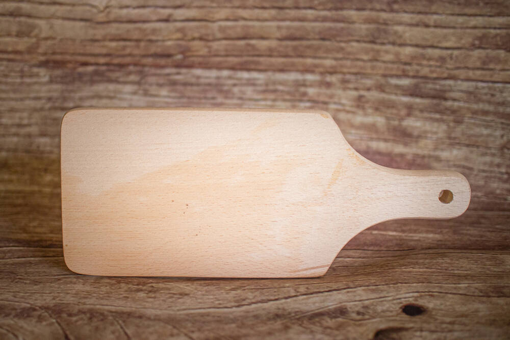 Artisanat jurassien, planche à poignée épaisse, de 11cm x18cm.